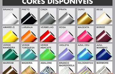 * VINIL ADESIVO C/ QUALIDADE SUPERIOR, CORES DISPONÍVEIS: