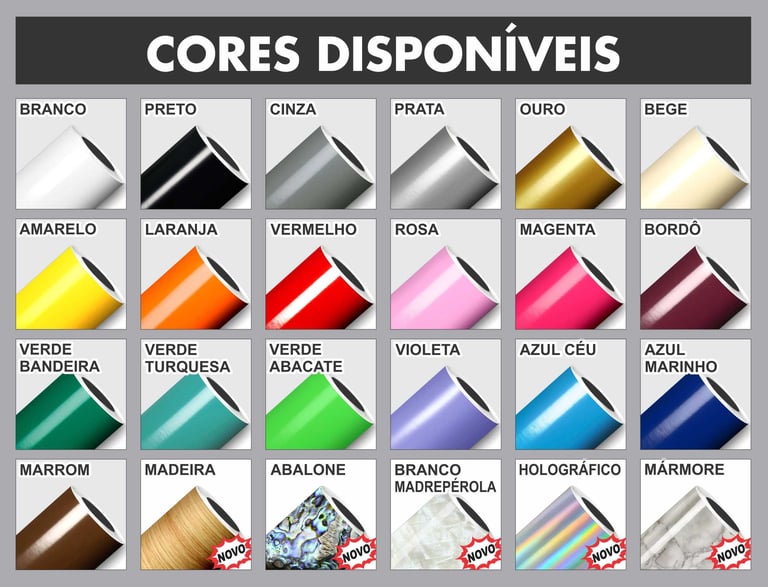 * VINIL ADESIVO, CORES E EXEMPLOS: